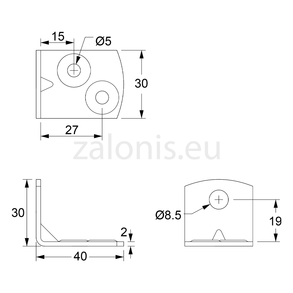 Γωνία στηρίξης στόπερ ρολλών 40χ30