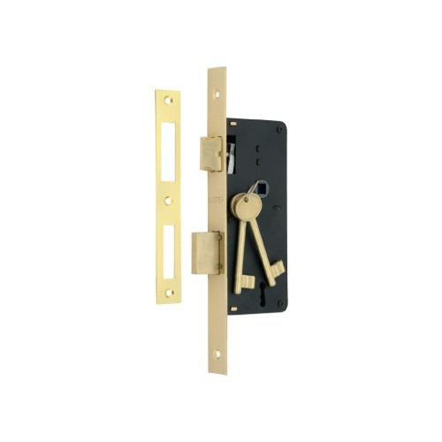 Κλειδαριά μεσόπορτας κέντρο 75/40, τετράγωνη πλάκα σε απόχρωση χρυσό. Συνοδεύεται με δύο κλειδιά, αντίκρισμα καθώς και τις βίδες τοποθέτησής της.